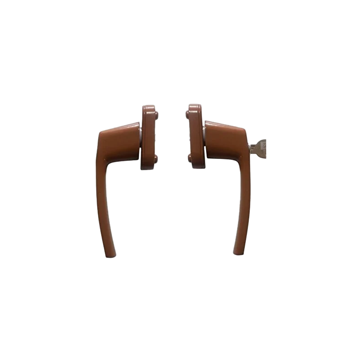 PVC ve alüminyum pencere sistemleri için tasarlanmış, estetik altın kahverengi (A.Kahve) renkte, kilit mekanizmasına sahip takım alüminyum pencere kolu. Modern görünümü ve dayanıklı yapısıyla uzun ömürlü ve güvenli kullanım sunar.