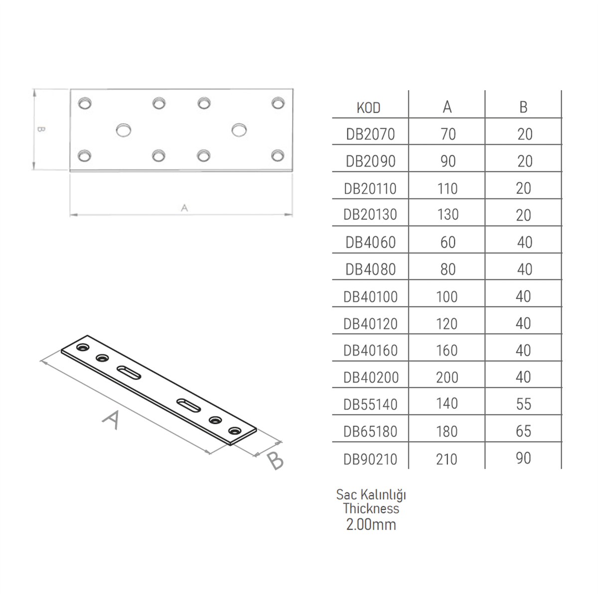 20 mm x 70 mm ölçülerinde, kompakt ve dayanıklı bağlantı parçası